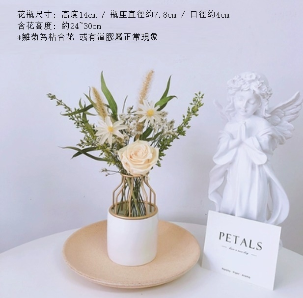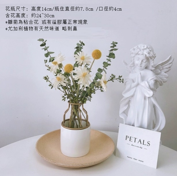 新款真花風幹天然客廳擺設(陶瓷鐵藝瓶 翠菊尤加利)