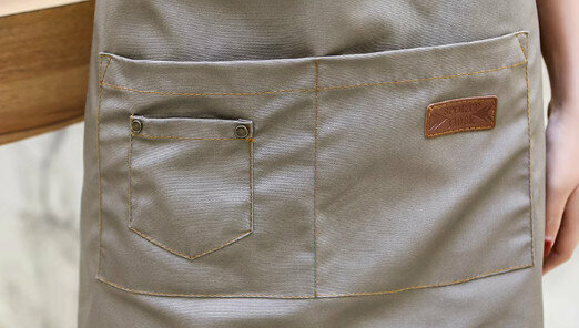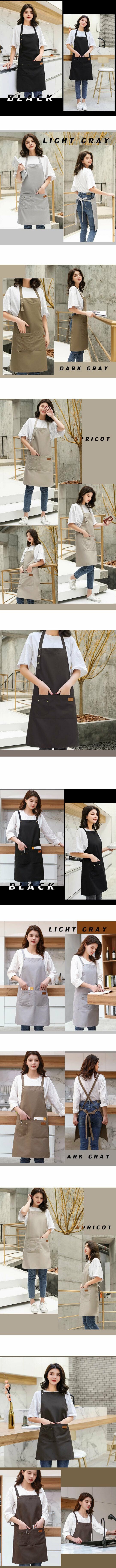 新款餐廳奶茶店帆布圍裙(膠扣雙肩帆布-淺灰)