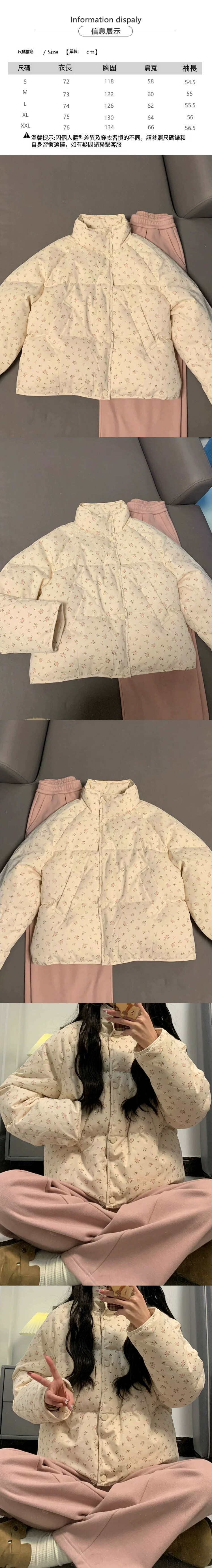 新款立領碎花羽絨棉服(白色)(S/M/L/XL/2XL下單後與客服聯系發貨的尺碼)