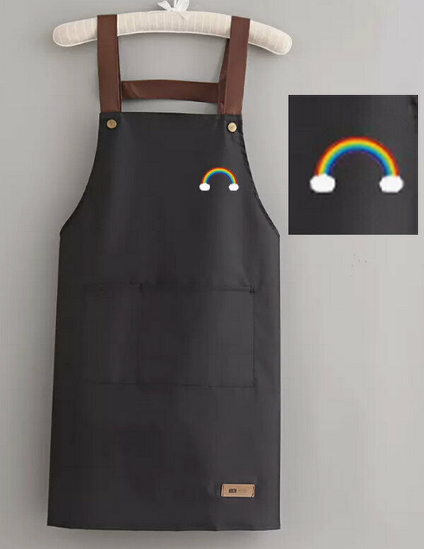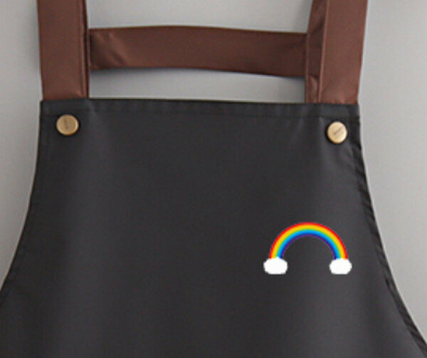 新款釘扣背帶防水純黑色圍裙-彩虹