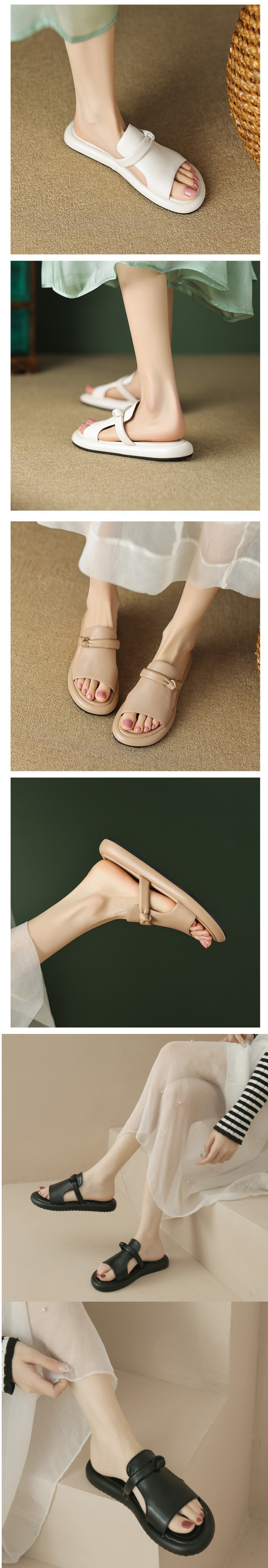 新款厚底休閒平底涼拖(卡其色35-40碼)(下單後聯絡客服確認發貨尺碼)