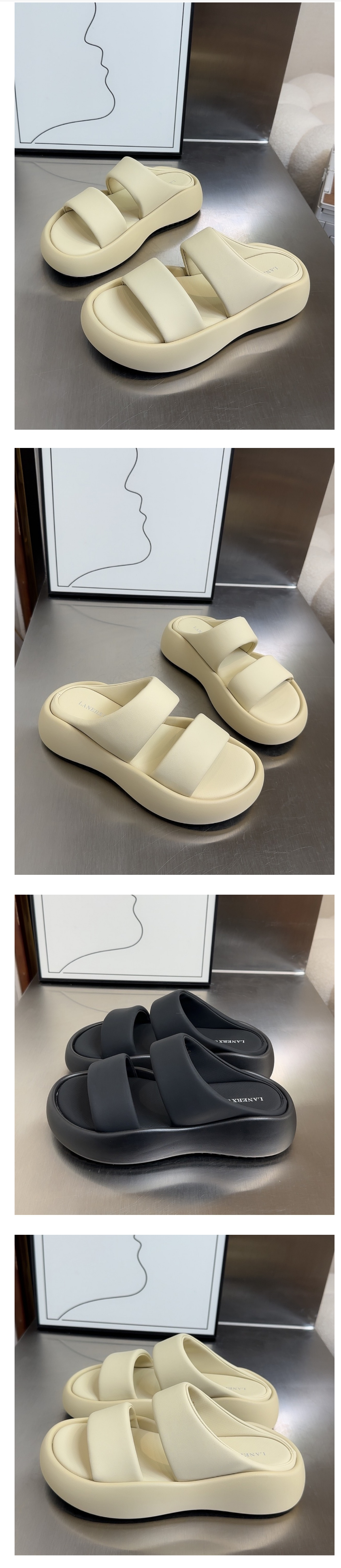 新款厚底一字休閒涼拖(米白色35-40碼)(下單後聯絡客服確認發貨尺碼)