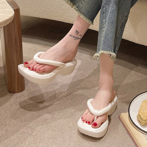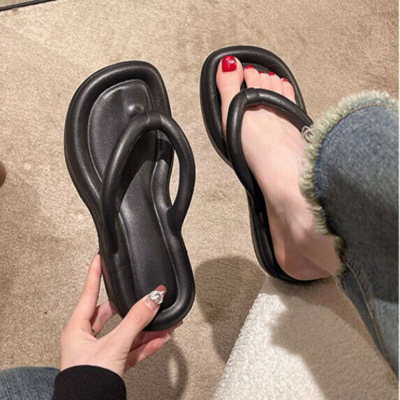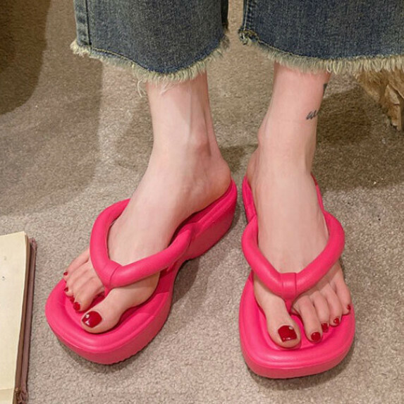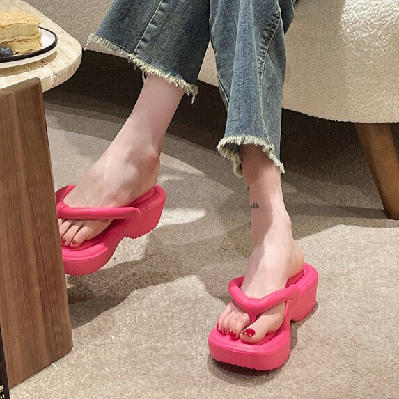新款厚底夾腳人字拖鞋女(玫紅色【35_40碼】(下單後聯繫客服確認發貨尺碼)