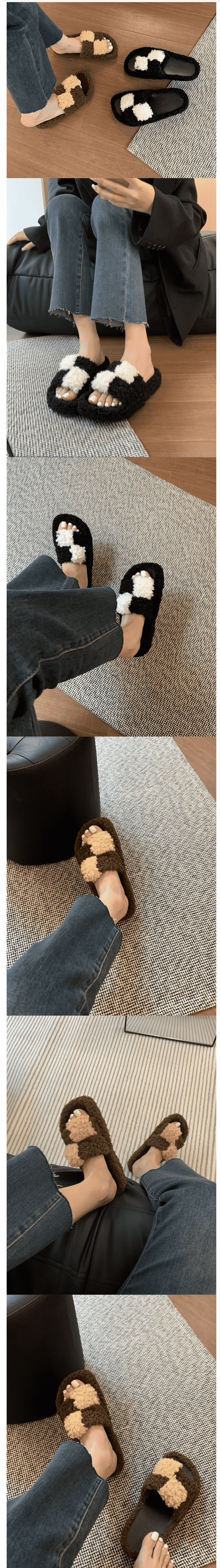 新款厚底毛毛一字拖鞋(黑色35-42碼)(下單後聯絡客服確認發貨尺碼)