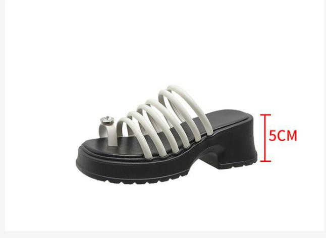 新款厚底一字帶增高涼拖鞋(米白色35-40碼)(下單後聯絡客服確認發貨尺碼)