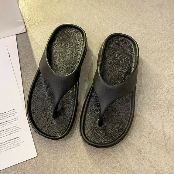新款厚底坡跟夾腳人字拖鞋女(黑色【35_44碼】(下單後聯繫客服確認發貨尺碼)