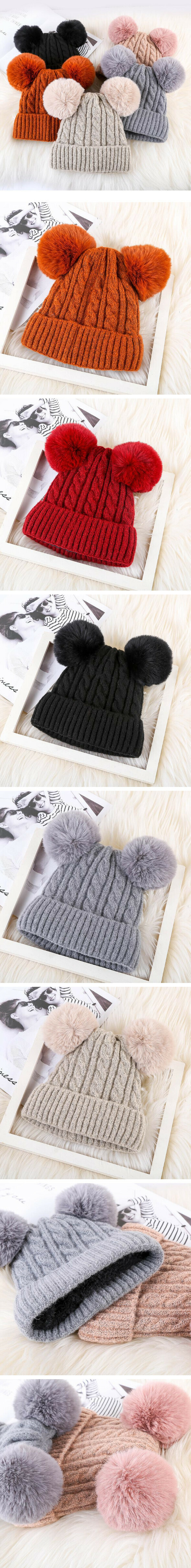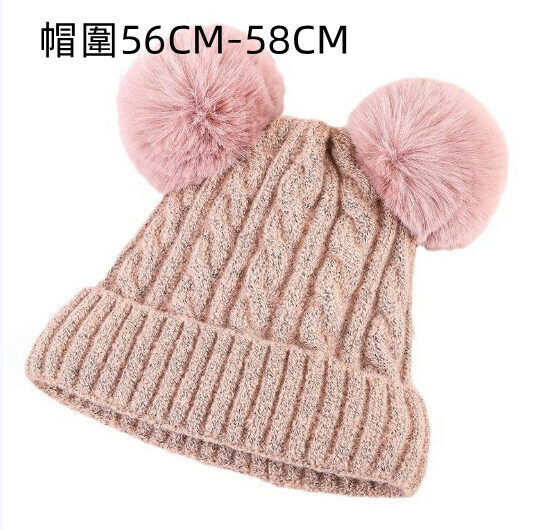 新款加厚毛絨雙毛球針織帽(A-110灰色)