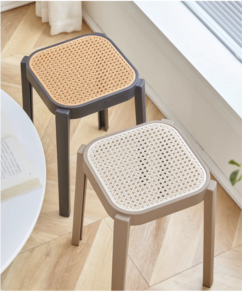 新款加厚籐編塑料方凳(黑色+棕芯)(尺寸:33.5*45.5*30CM)
