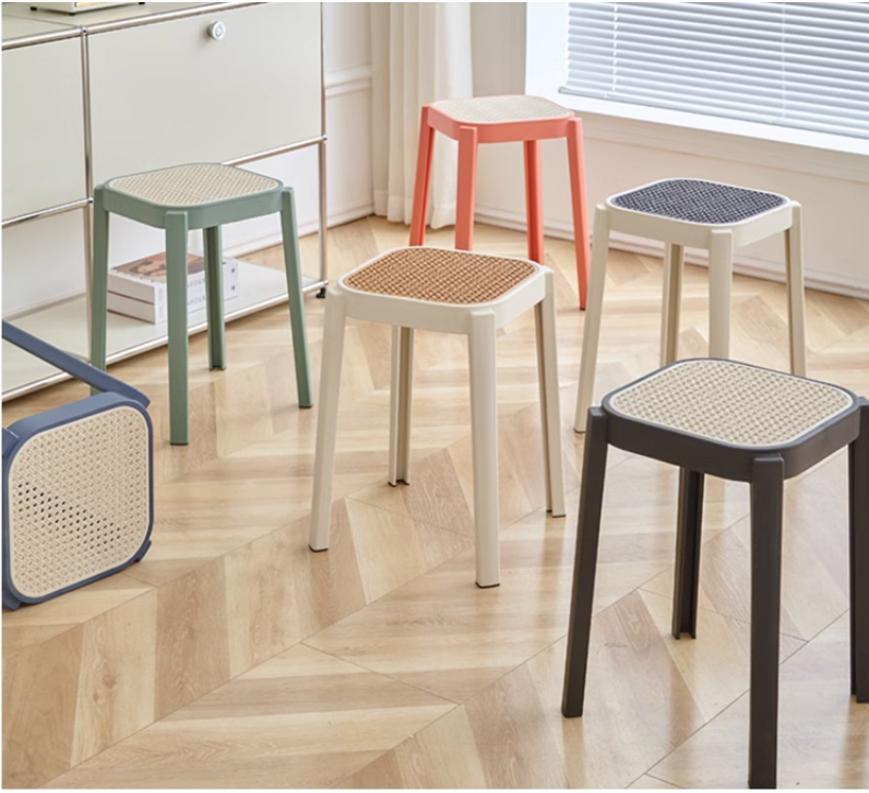 新款加厚籐編塑料方凳(黑框+白芯)(尺寸:33.5*45.5*30CM)