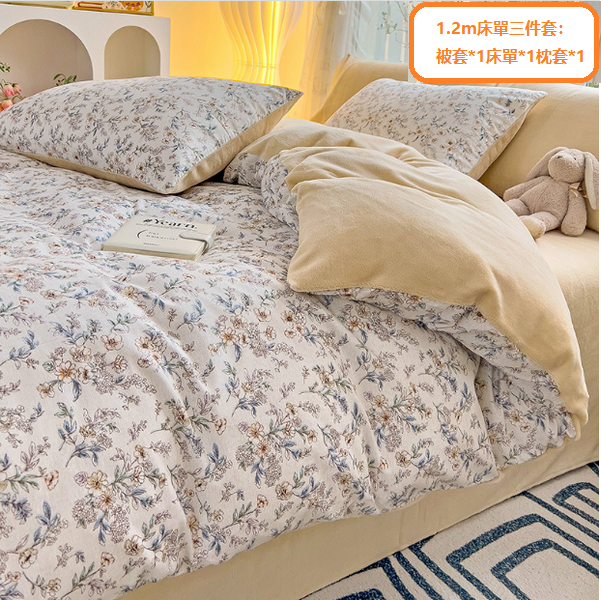 新款床上用品三件套(花香暖語【100%純棉+高密牛奶絨】(尺寸1.2m床單三件套)