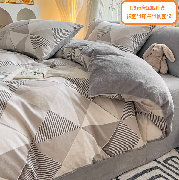 新款床上用品三件套(菱格【100%純棉+高密牛奶絨】)(尺寸1.5m床單四件套)