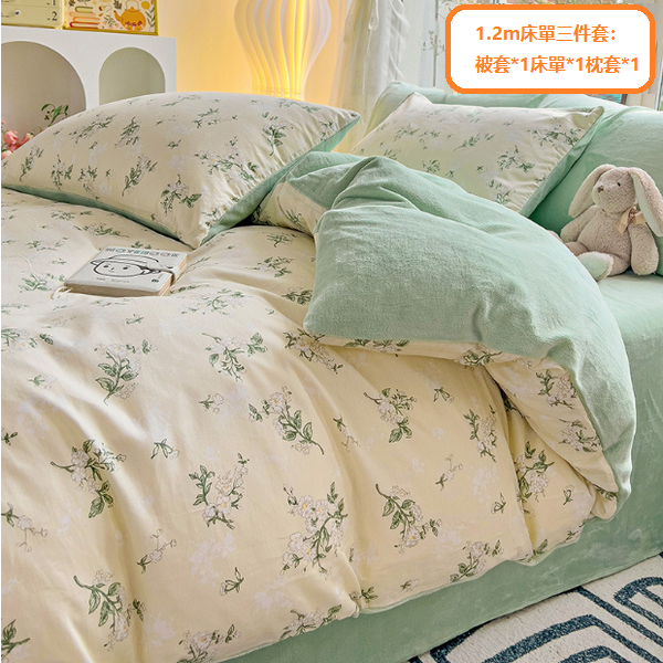 新款床上用品三件套(茶藝師【100%純棉+高密牛奶絨】)(尺寸1.2m床單三件套)
