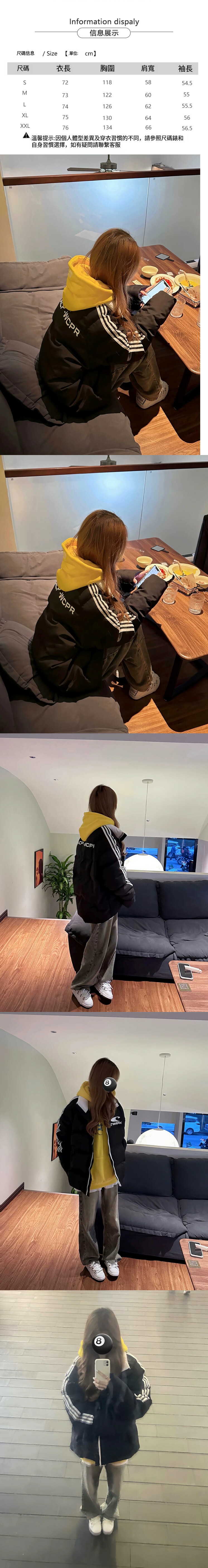新款三條杠高領羽絨棉服(黑色)(S/M/L/XL/2XL下單後與客服聯系發貨的尺碼)
