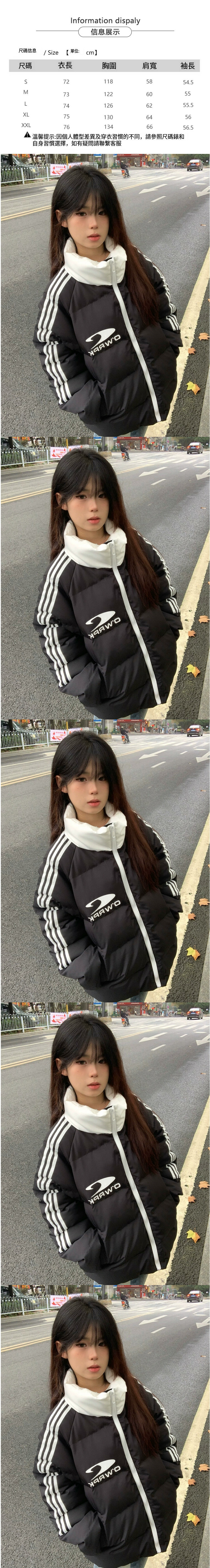 新款三條杠高領棉服(黑色)(S/M/L/XL/2XL下單後與客服聯系發貨的尺碼)