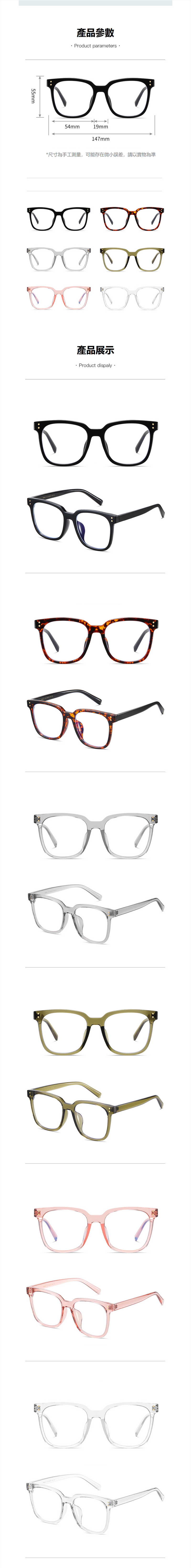 新款TR文藝復古鏡框女無度數時尚潮流平光鏡(透明色+防藍光片)