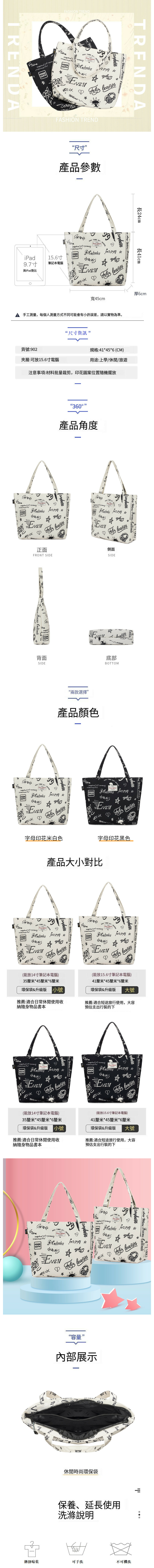 新款背包潮人 旅行背囊 學生書包 電腦袋 行山背囊 【米白色 大號-字母印花】