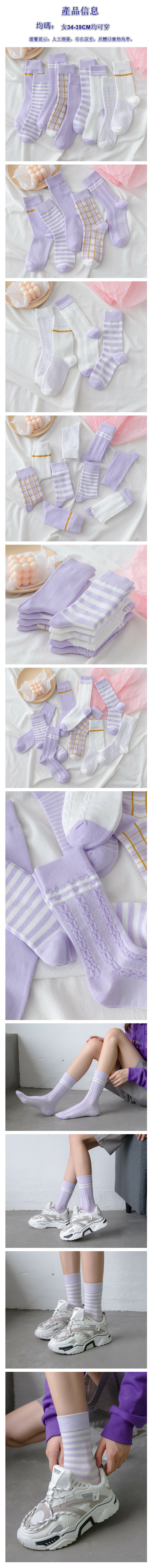 新款潮流學院風棉襪 女中長筒襪【白襪格子】【均碼】
