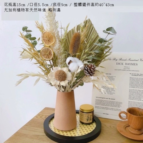 新款幹花花束真花(磨砂棕色花瓶 荷藕尤加)