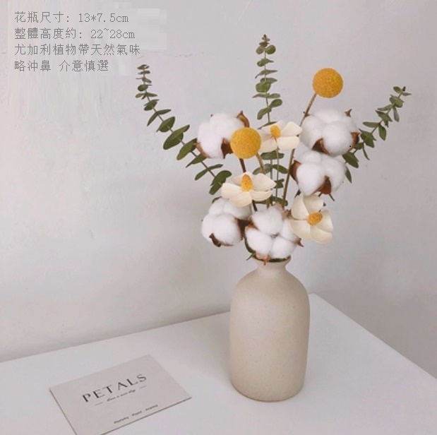 新款幹花花瓶擺件(粗陶花瓶 姜茶尤加利)