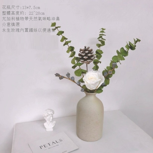 新款幹花花瓶擺件(粗陶花瓶 白月光尤加利)