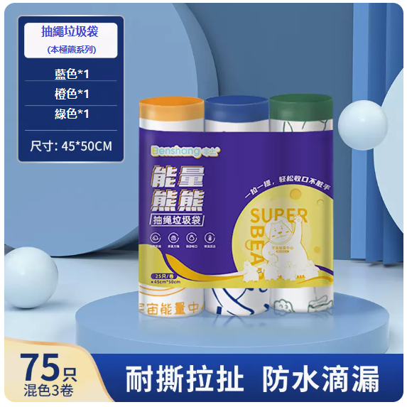 新款垃圾袋(3卷IP垃圾袋[抽繩收口]防水滴漏)