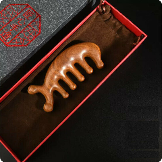 新款頭部加厚大齒經絡梳(【紅檀7齒】禮盒裝)