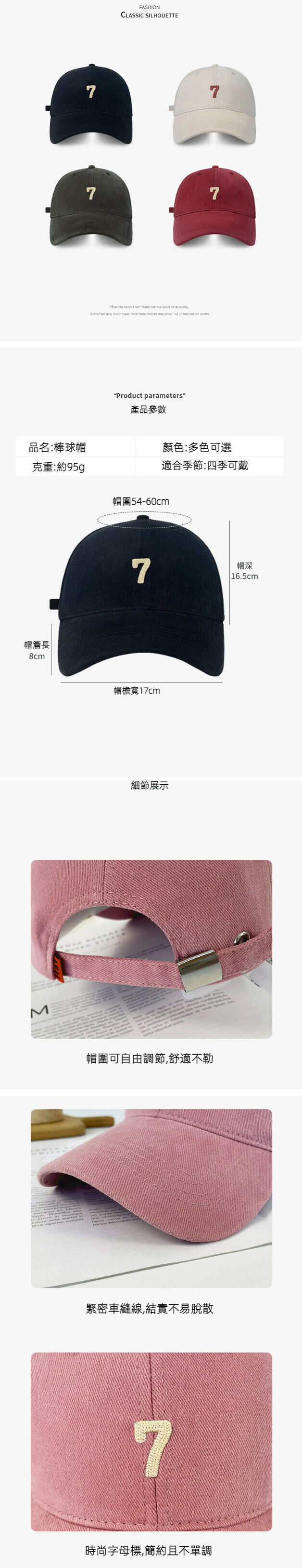 新款百搭磨毛字母刺繡7鴨舌帽(500CHT藏青色)