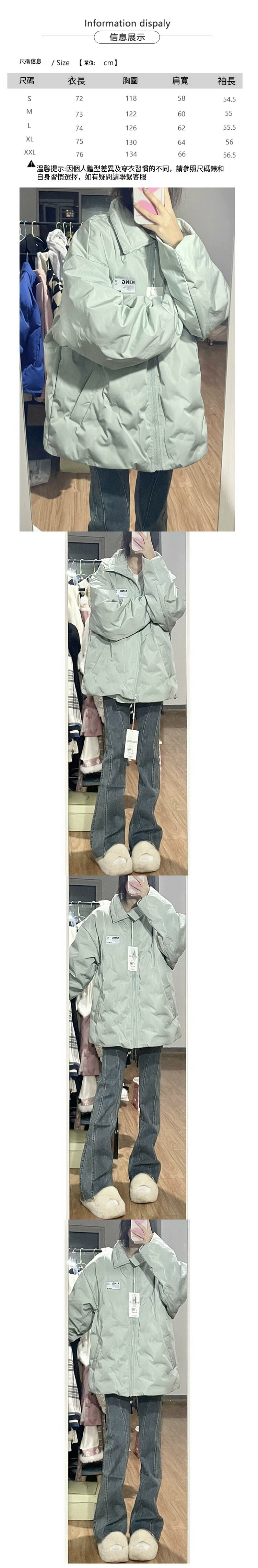 新款百搭棉服(淺綠色)(S/M/L/XL/2XL下單後與客服聯系發貨的尺碼)