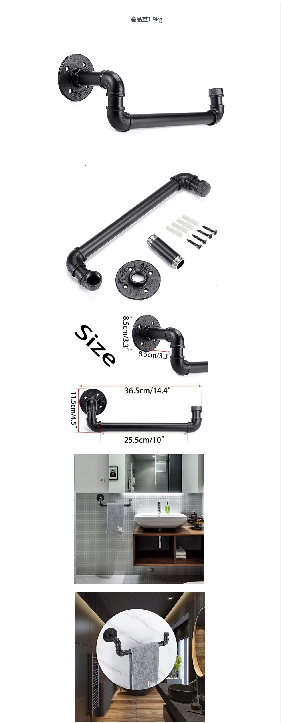 新款壁掛式衣帽架浴室毛巾架(黑色,36.5x11.5cm)