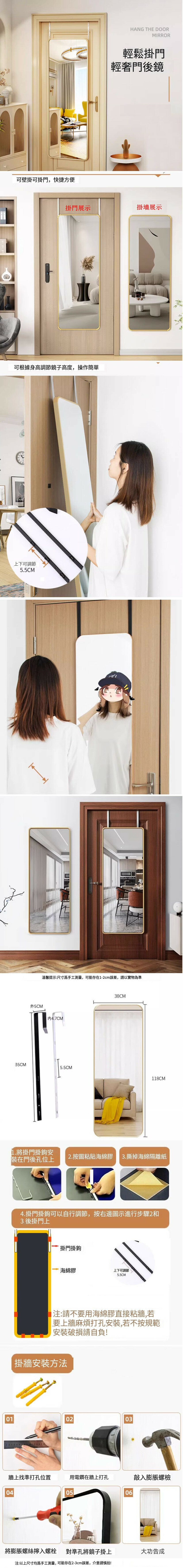 新款掛牆掛門鏡子(50*160cm紳士黑)