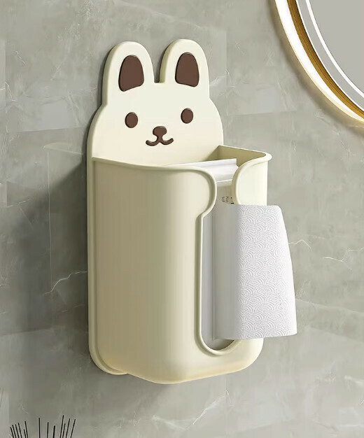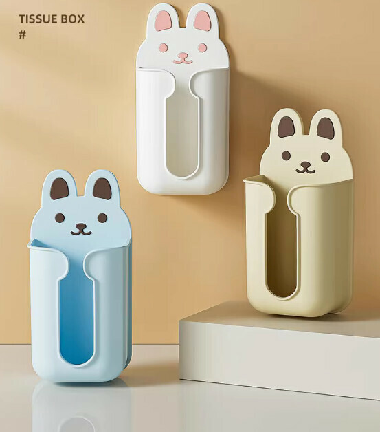 新款壁掛式免打孔卡通紙巾盒(卡其兔)