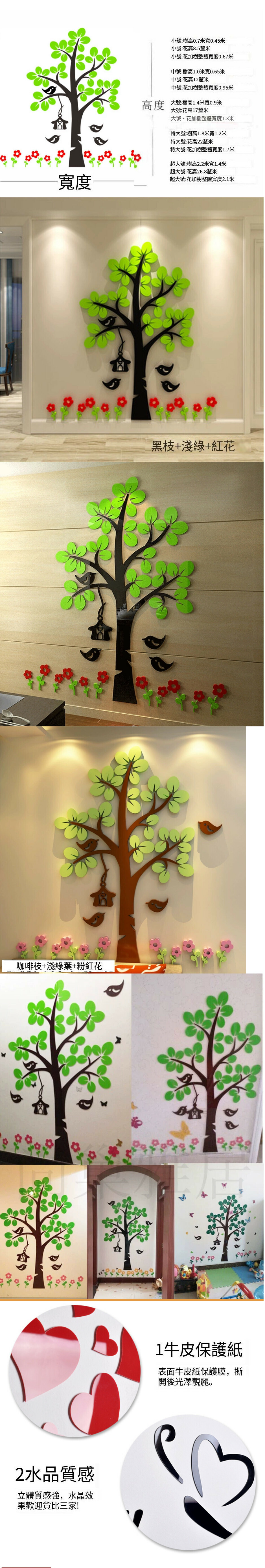 新款牆貼創意樹【咖啡枝+淺綠葉+粉紅花】尺寸【超大】