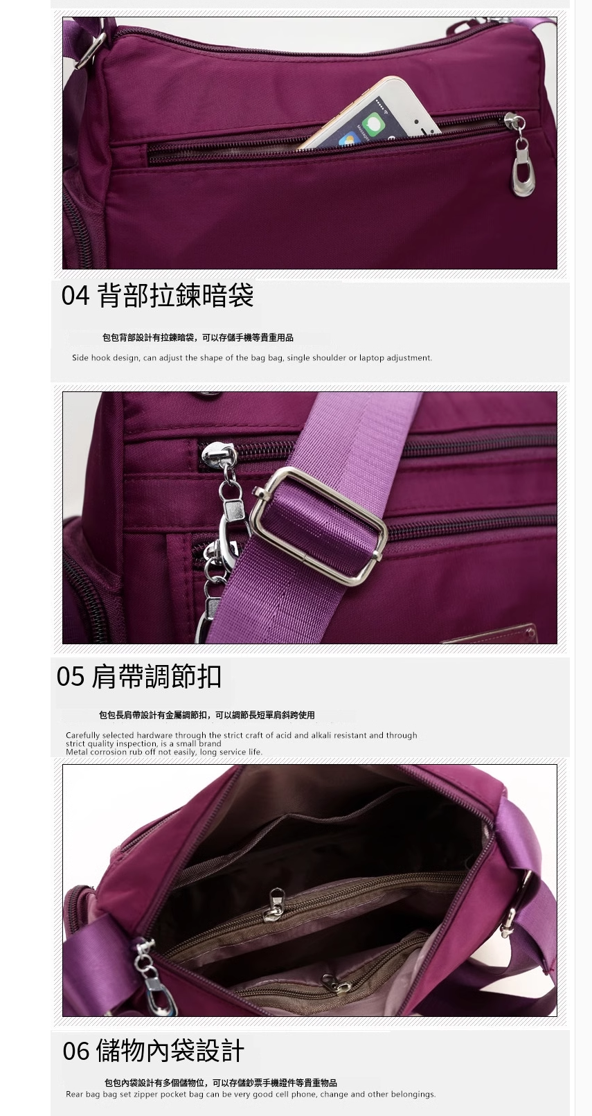 新款防水尼龍布包 女包單肩斜挎包 輕便牛津布包【亮紫色】