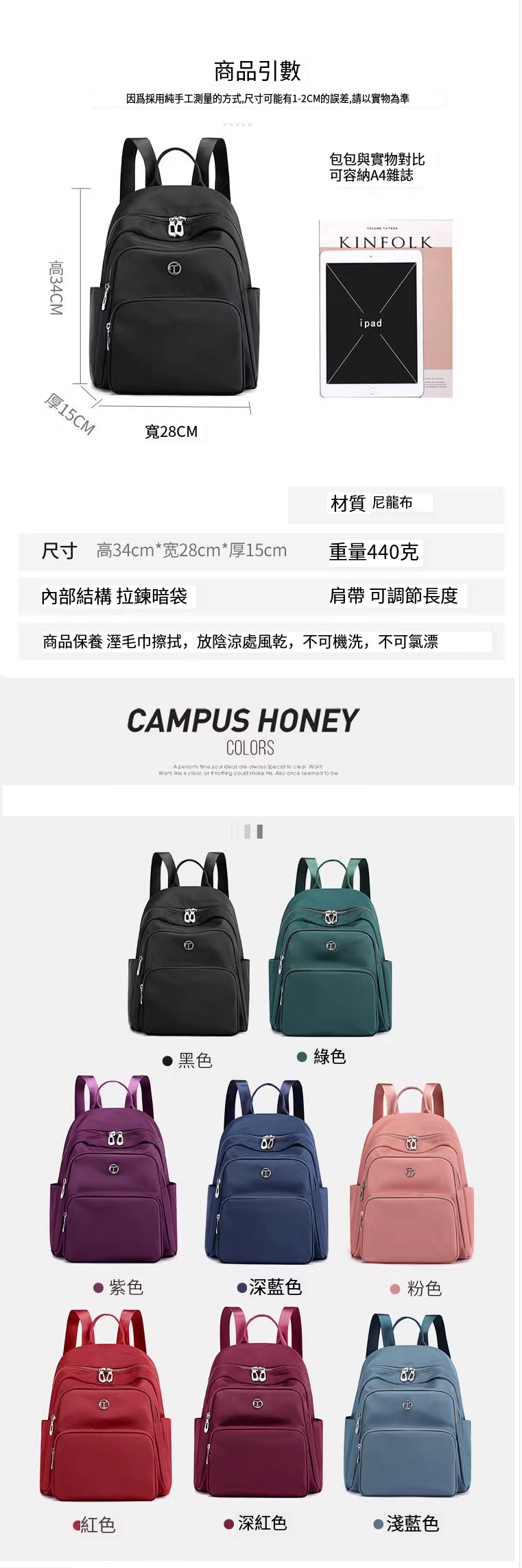 新款雙肩包女 韓版牛津布背包 大容量帆布包 旅行包包【綠色】