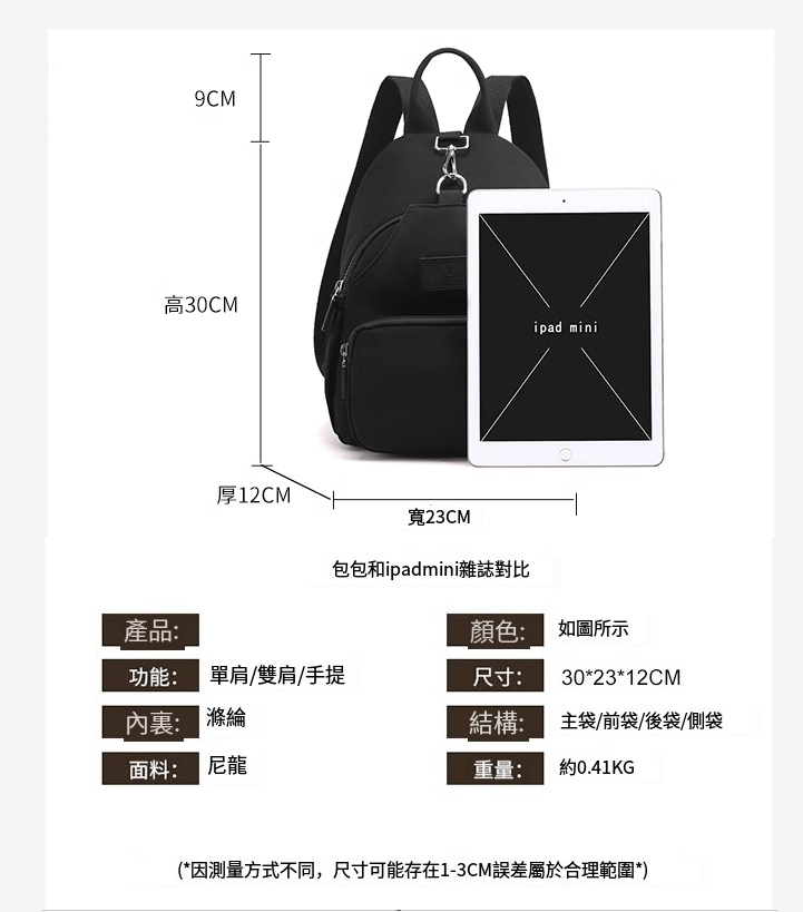 新款雙肩包女 旅行牛津布背包 帆布包【酒紅色】