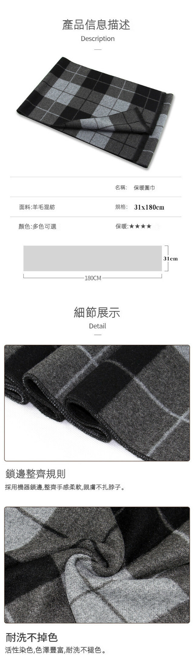 新款羊毛混紡休閒圍巾(TYMK-03)(尺寸:長180*寬31cm)