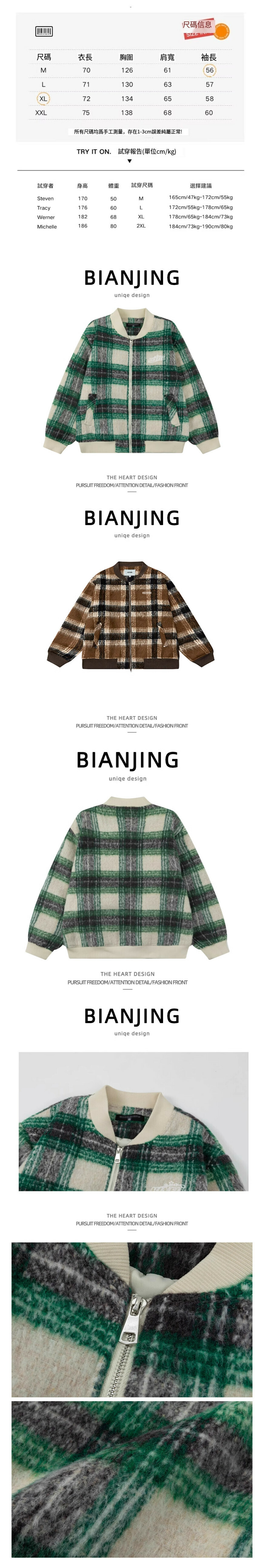 新款毛呢棒球夾克外套【咖色】(尺碼:S-2XL碼) (下單後請聯絡客服確認發貨尺碼)