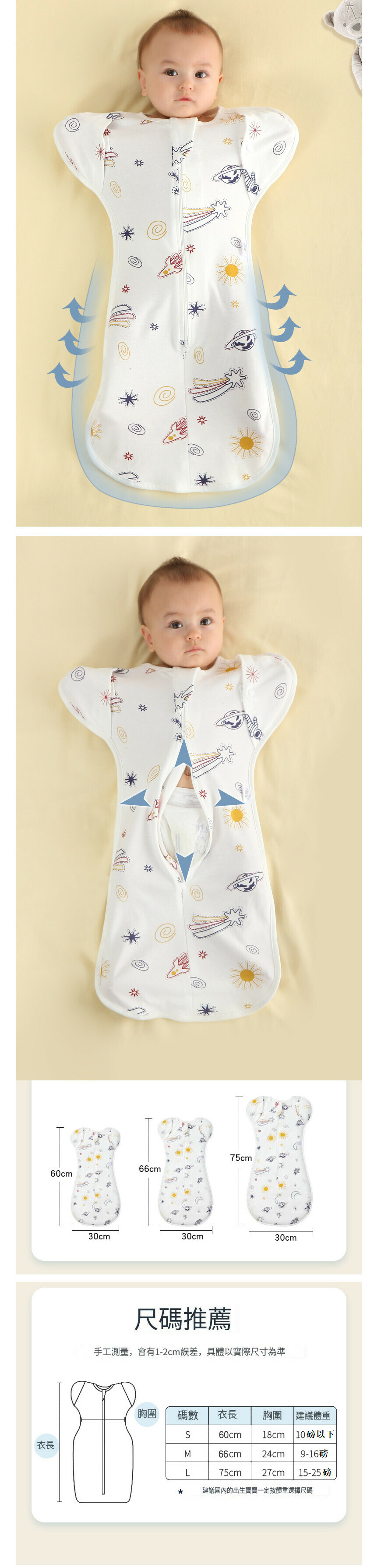 熱推新生兒防驚跳包巾睡袋(美麗彩虹)60CM(適合0-3月)不伸袖