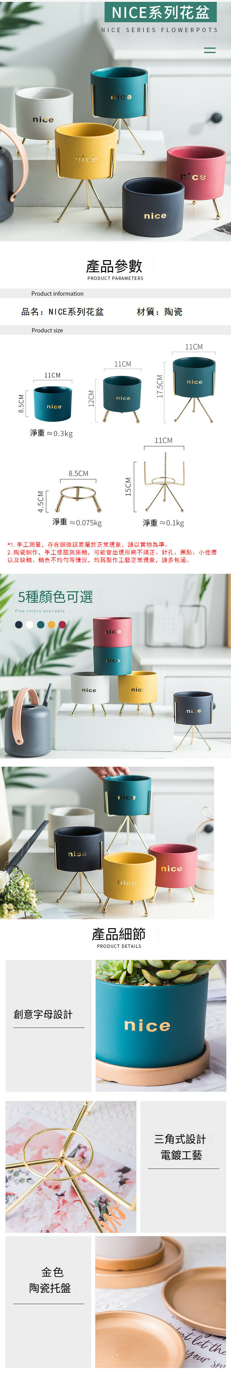 熱推nice鐵藝多肉陶瓷花盆【米白色+矮款花架 有孔】