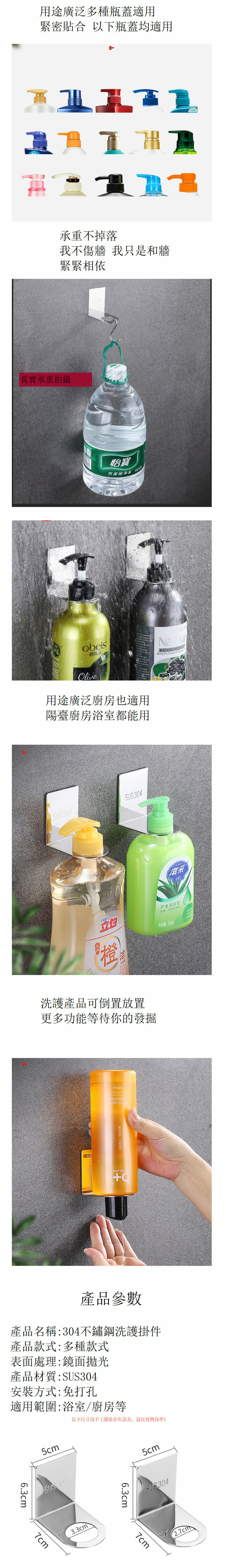 熱賣免釘免打孔 304不鏽鋼掛架 浴室洗髮水/沐浴露掛架 廚房洗潔精壁掛-小號規格【直徑2.7cm】