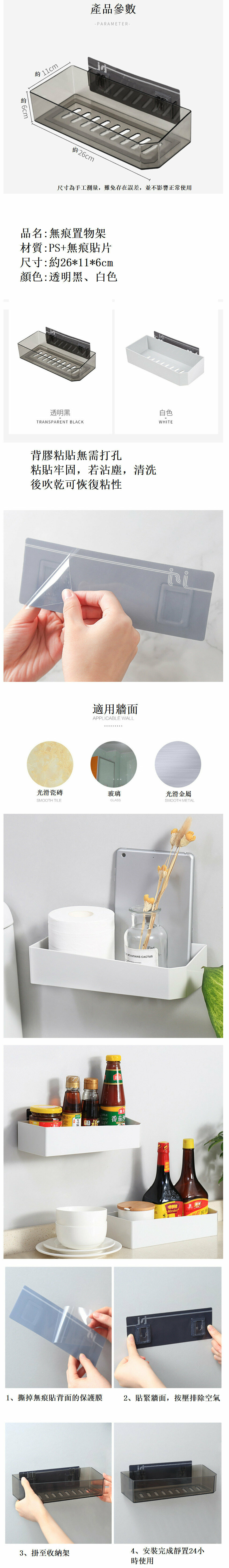 激抵免打孔浴室置物架 牆壁掛籃 壁掛式收納架 浴室整理籃 儲物 掛牆置物籃【顏色透明黑】