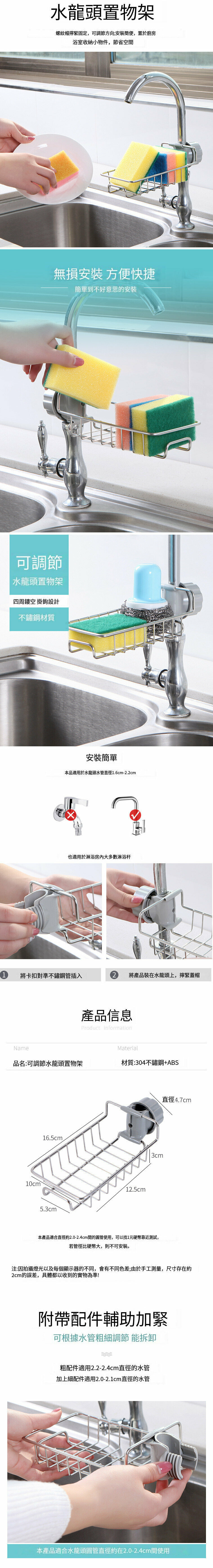 爆款不銹鋼可調節水龍頭置物架 不銹鋼瀝水雜物架 創意廚房整理架 不銹鋼海綿抹布鐵掛籃 洗碗池水槽收納架 瀝水置物架