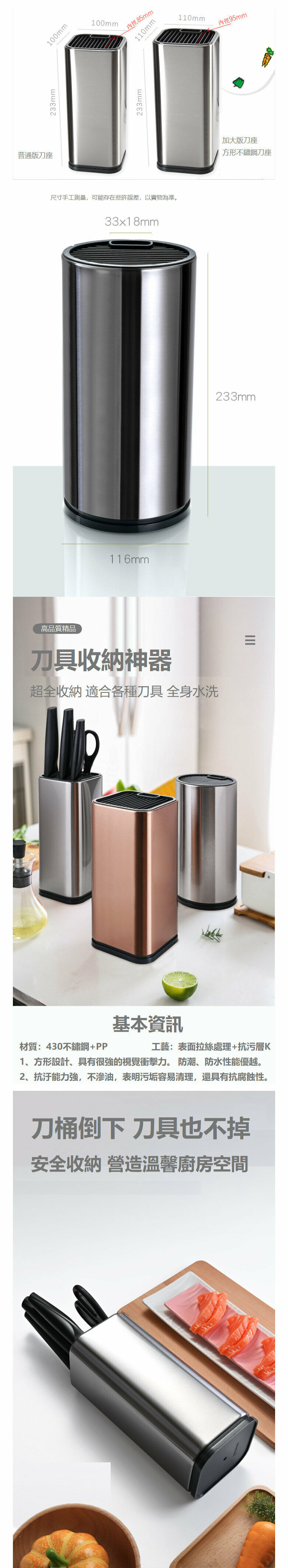 熱賣不銹鋼刀座 廚房刀具架 插刀置物架【加大原色版(含彩盒)】