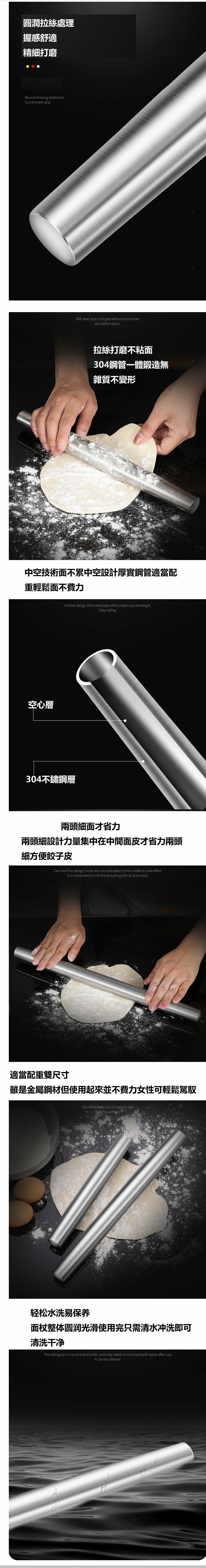 熱賣不銹鋼厚度麵粉棍 (烘焙工具)壓面團棍【規格大號43CM】