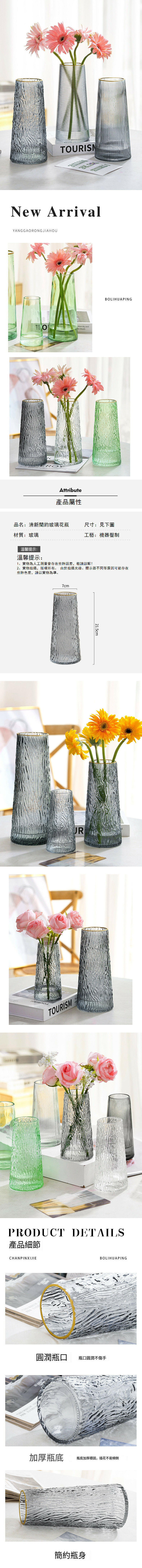 熱推北歐描金玻璃花瓶【21.5樹皮紋灰色描金】