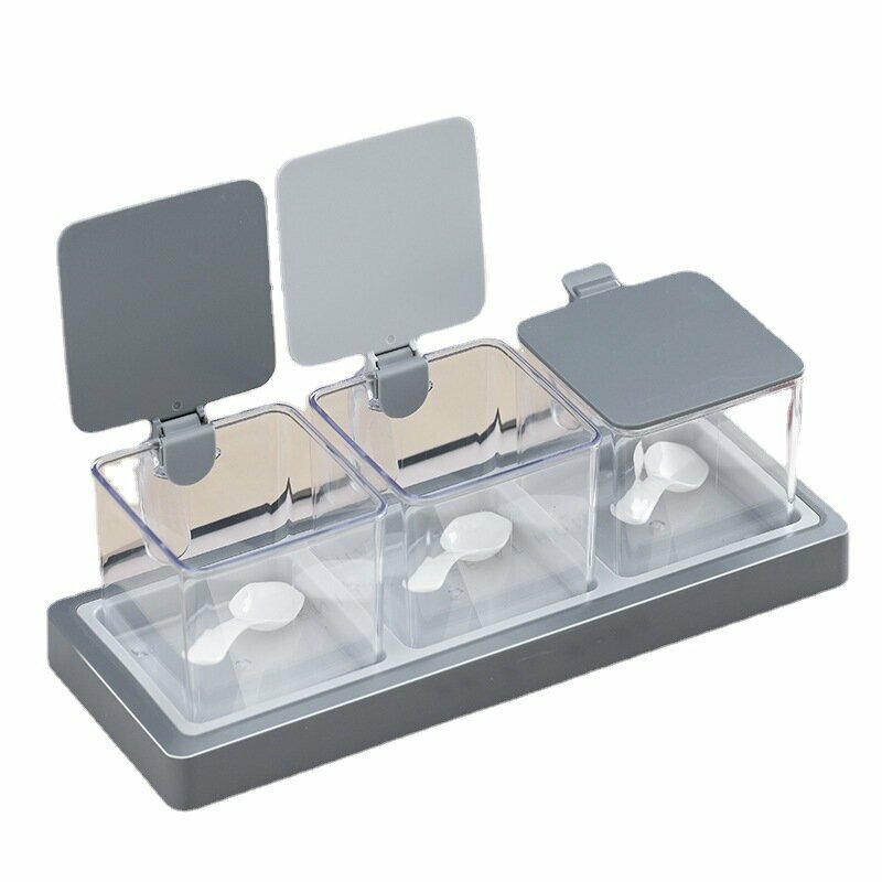 新款北歐簡約淺灰色3格調味盒 托盤式廚房套裝調料罐