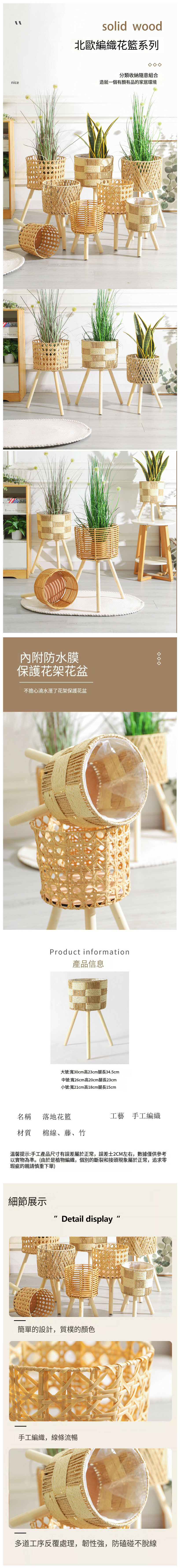1件裝 北歐實木藤編花架--竹編置物架 陽台花盆架子【串花花架大號】