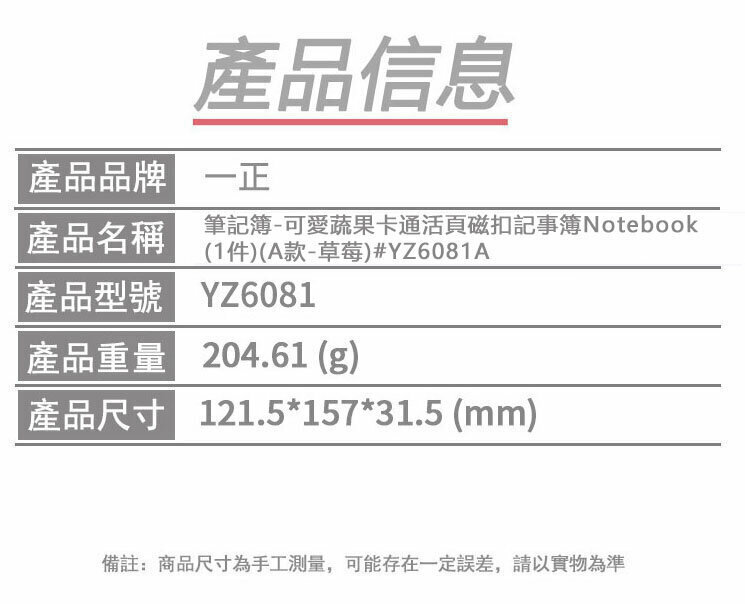 熱賣筆記簿-可愛蔬果卡通活頁磁扣記事簿Notebook (1件)(A款-草莓)