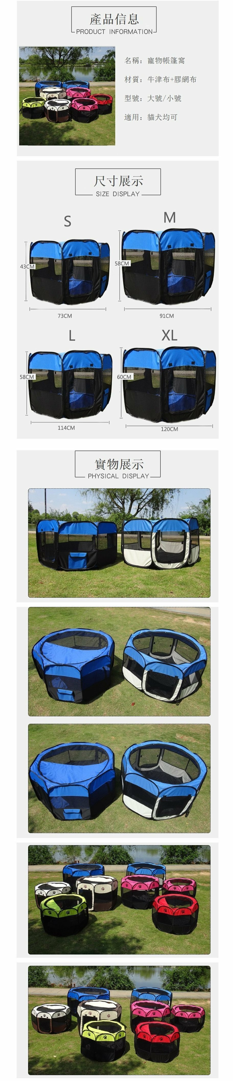 爆款八角寵物圍欄貓狗產房帳篷L(91*91*58cm)藍色+米色