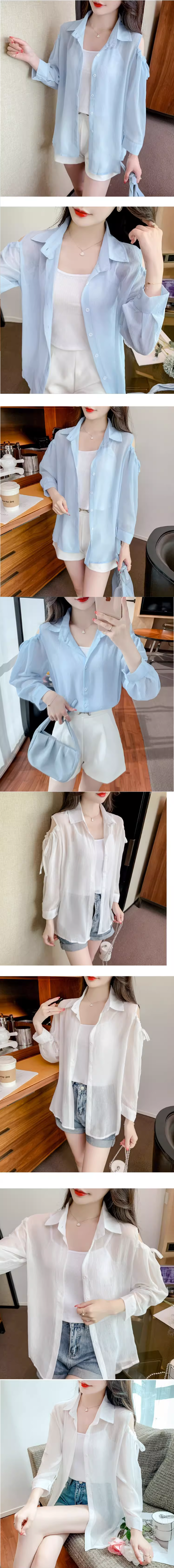 熱賣露肩長袖雪紡襯衫(藍色 尺碼:S-3XL)(下單後請聯絡客服確認發貨尺碼)